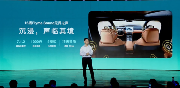 在听觉方面,新车配备了同级少有的头枕音响和同级独有的Flyme Sound 16扬声器系统,共同打造出同级唯一的7.1.2全景环绕声效果。在AI智能音效算法的加持下,可以精准还原录音棚、音乐厅、歌剧院、演唱会四大虚拟声场,为用户带来媲美“柏林之声”的极致听觉盛宴。