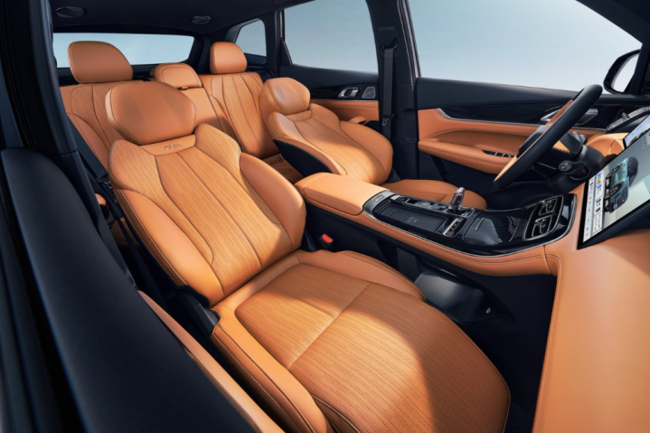 第四代博越L的智能座舱以中华山水美学为蓝本,打造出古典与现代、写意与写实相融的和谐空间。栖岸望潮·环抱式座舱设计大气且舒展,拥有同级领先的84.27%空间利用率,仅凭A+级车身尺寸就提供了B+级的宽敞空间。内饰配色方面,琥珀金明亮富丽,彰显高雅品味;松露灰则沉稳低调,百搭而不失奢华感。